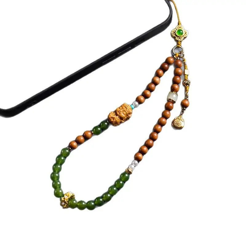 沐匙精致手机链玉髓檀香木手机挂件福袋手腕款防丢挂饰国风复古