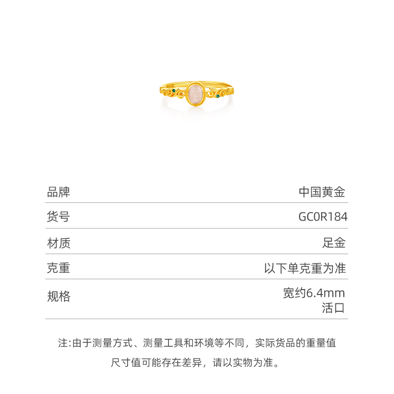 【中国黄金官方店】足金5G花丝白珐琅戒指时尚气质首饰新品百搭