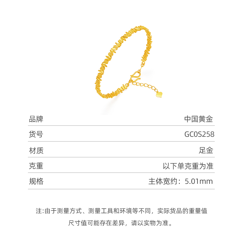 【中国黄金官方店】足金星辉跃光5G手镯时尚简约气质百搭新品首饰