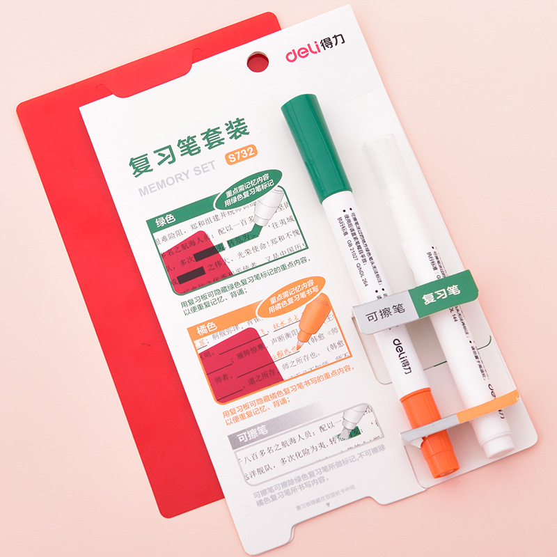 得力S732可消除暗记笔套装复习背单词神器背书遮挡板辅助快速记忆
