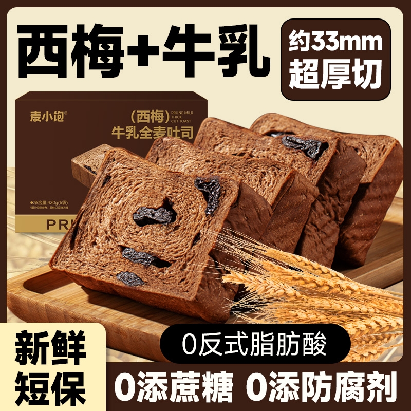 西梅牛乳厚切吐司全麦面包巧克力学生早餐代餐减饱腹肥无糖精整箱