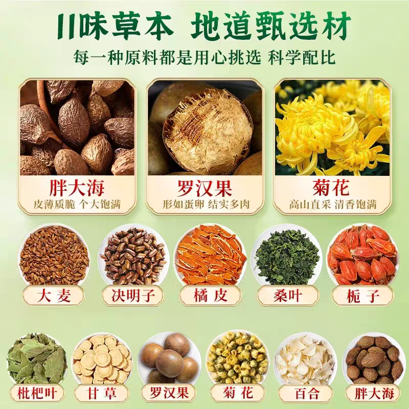 适合秋季喝的养生茶包胖大海罗汉果雪梨茶竹蔗茅根玉竹麦冬水润燥