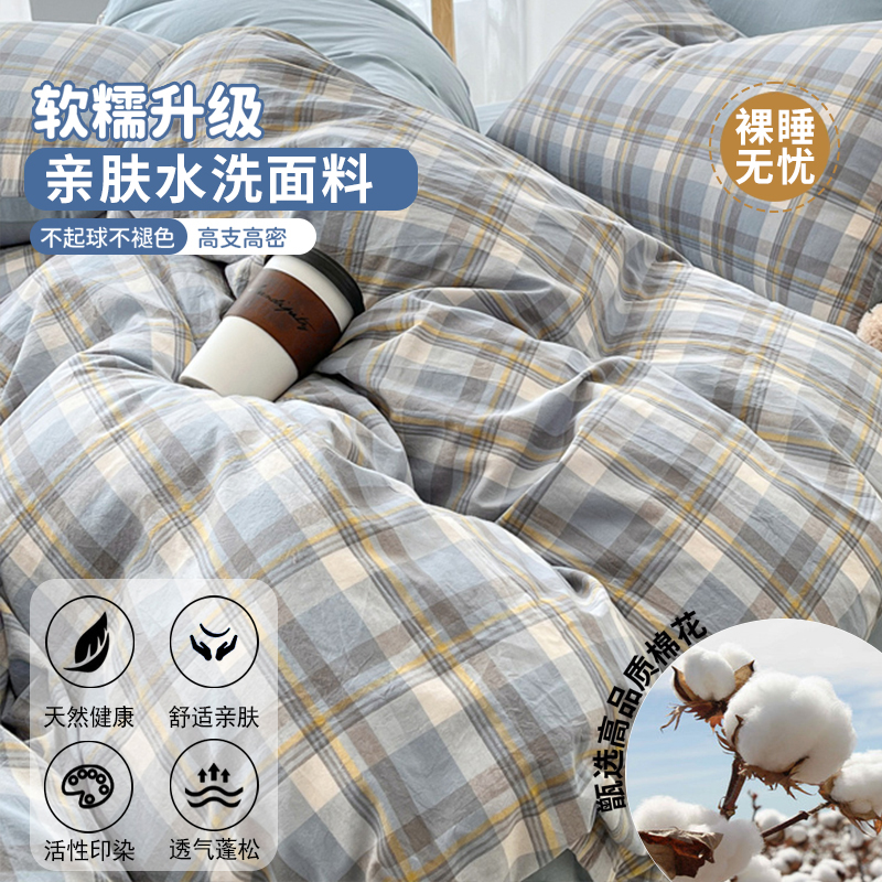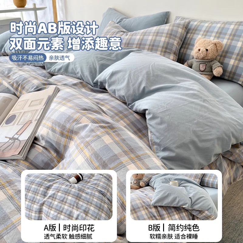 纯色全棉纯棉被套单件150x200x230三四件套单人宿舍被罩床笠款