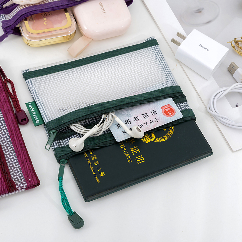 网格文件袋加厚透明网格拉链袋A4试卷收纳袋学生用考试文具袋防水笔袋办公用品批发公文档案袋资料袋包邮