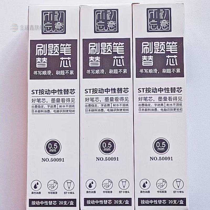 不忘初意刷题笔舒适简约按动可爱商务高颜值速干0.5中性黑笔芯