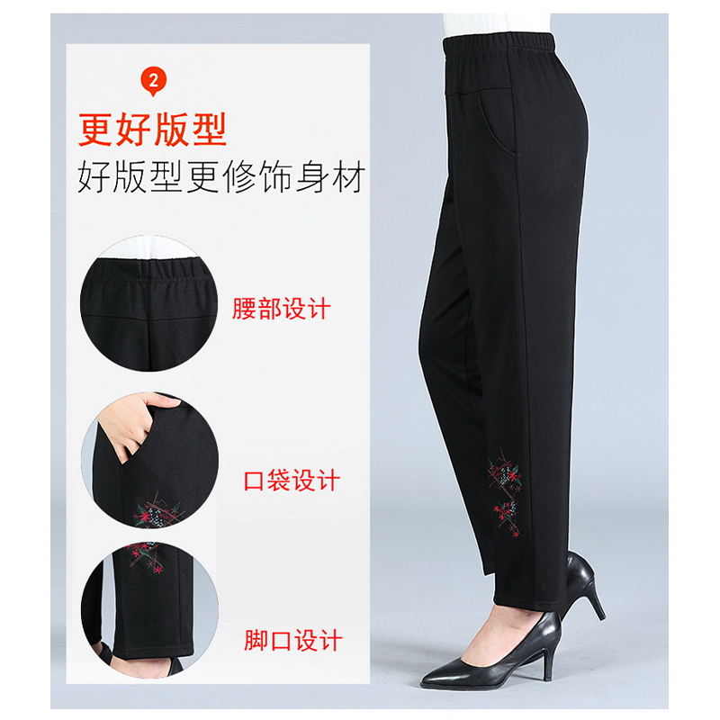 中老年女裤秋冬新款大码休闲裤妈妈绣花裤子加绒加厚奶奶保暖长裤