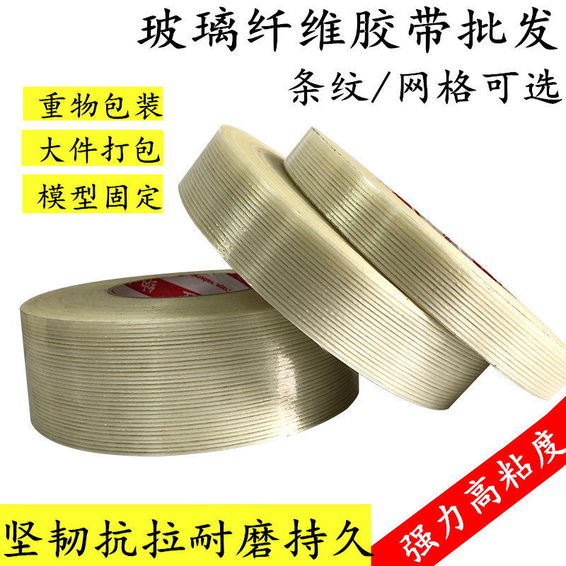 特价批发透明纤维胶带 条纹纤维胶带 锂电池捆绑固定单面网格纤维胶带不锈钢钢材运输等高粘性强力耐磨抗拉伸