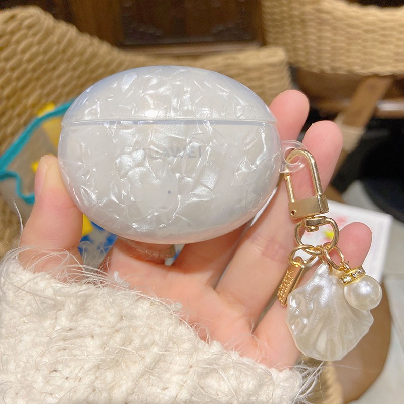 适用华为freebuds6保护套5贝壳纹6i简约Freebudspro4耳机壳freeclip轻薄小巧SE3壳freebuds4E挂件女防摔ins风