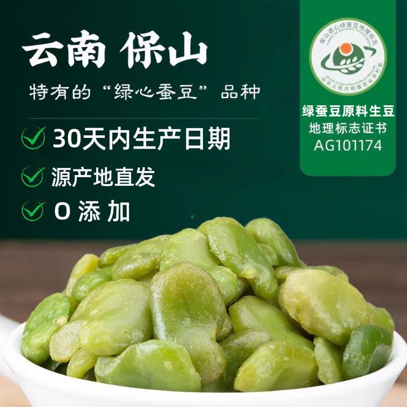 云南保山绿心蚕豆250g零食兰花豆下酒菜无壳蚕豆片原味油炸办公室