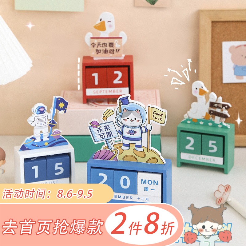 速发今天也要加油鸭可爱鸭子木制积木台历桌面摆件办公室2022年小