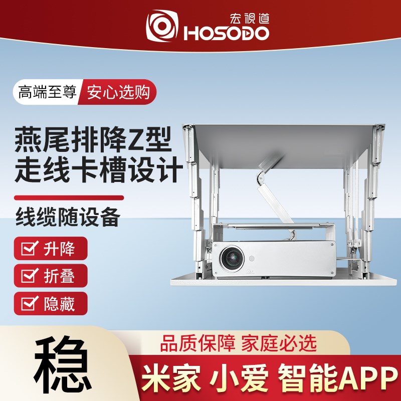 热销宏视道排降式家用超薄嵌入式投影仪电动吊架隐藏式吊装天花隐
