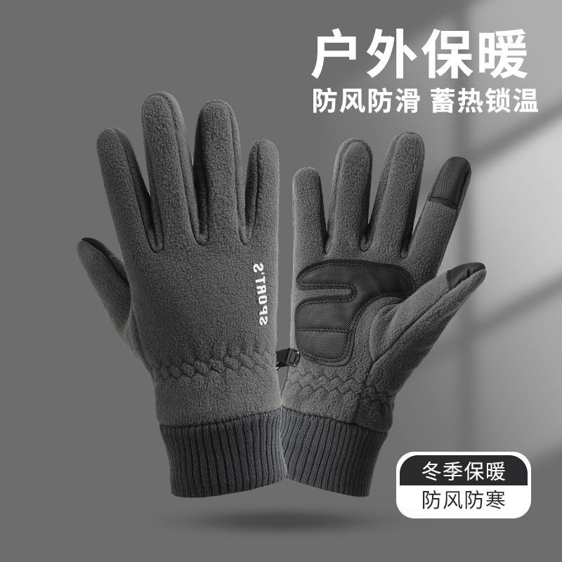 新款冬季保暖手套加绒加厚防寒触屏骑行开车户外运动德绒棉手套