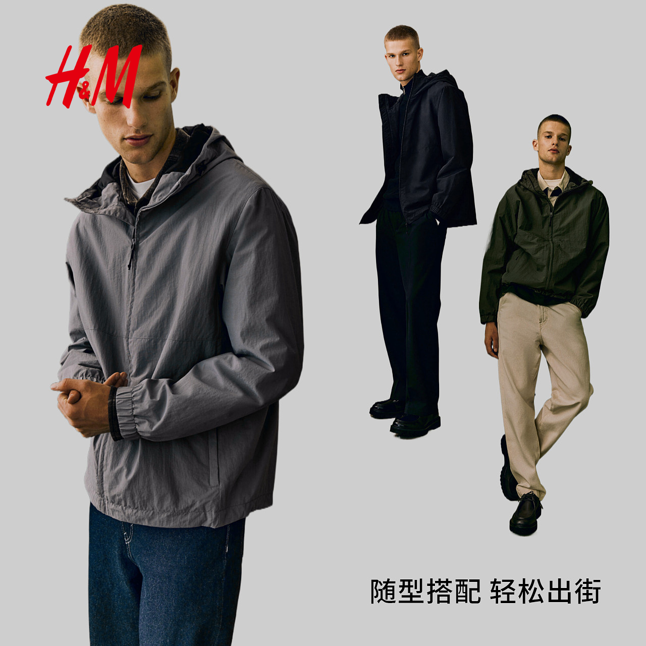 HM男装女装夹克秋季山系户外登山服防风疏水连帽夹克1160969