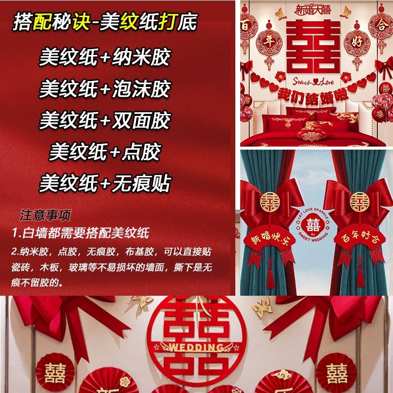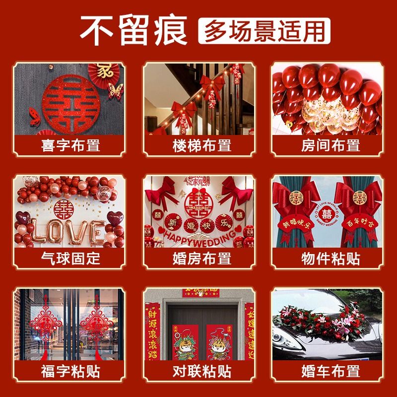 美纹纸结婚胶带婚房布置无痕点胶高粘度不伤墙喜字纳米贴双面胶贴布基胶贴红色点点胶无痕贴墙面不留胶白墙