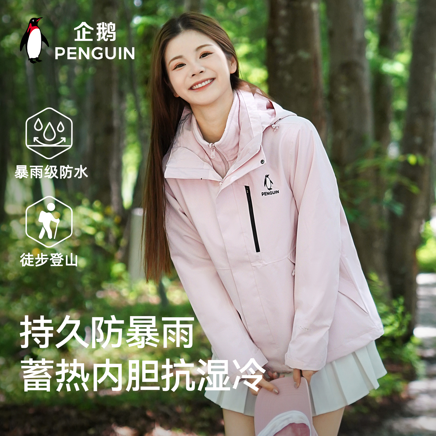 企鹅「风盾1.0」户外机能冲锋衣男三合一防风防水登山服外套女
