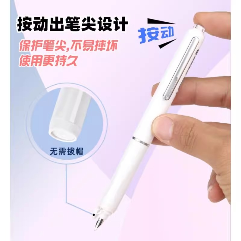 点石制笔按动钢笔小舱门EF尖不溅墨DS-784按压式可擦钢笔中小学生正姿笔握练字笔可换墨囊高颜值多巴胺色钢笔