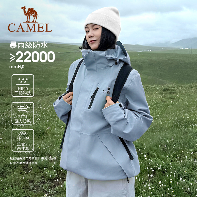 骆驼户外冲锋衣女款25年三合一超好看暴雨级三防骑行登山服外套男
