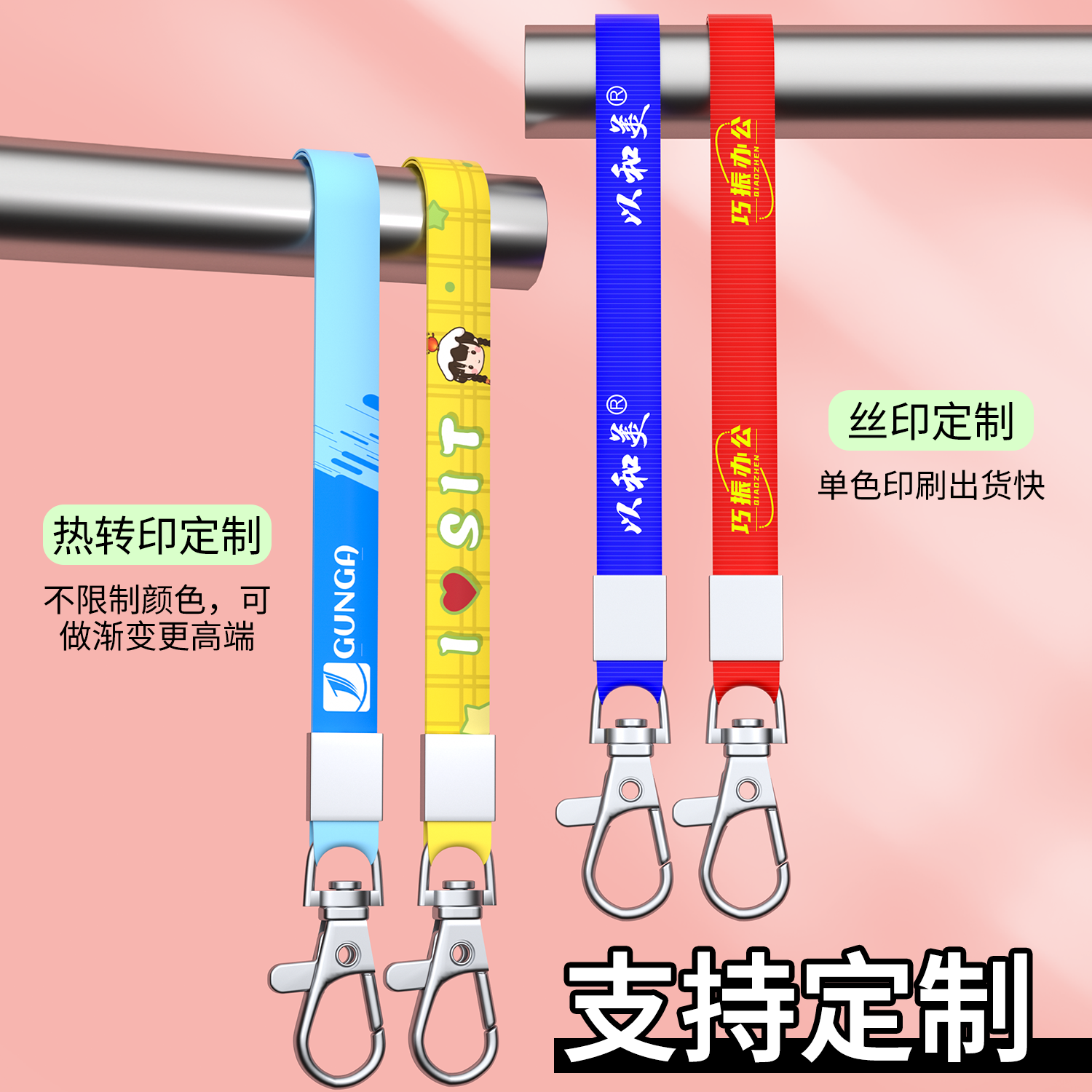 1cm宽工牌卡套挂绳定制工作证挂脖绳证件套绳子工作牌金属扣胸牌胸卡工卡厂牌套印LOGO门卡门禁挂牌吊绳带子