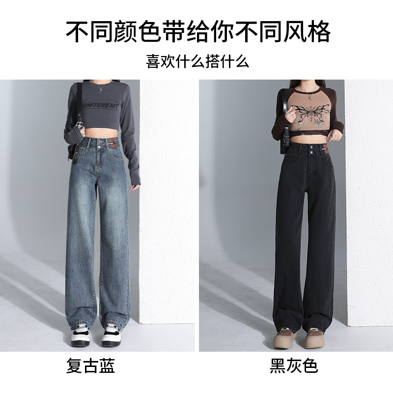 森柔牛仔|森马牛仔裤女抓毛拖地裤显腿直2024冬季新款阔腿裤港风