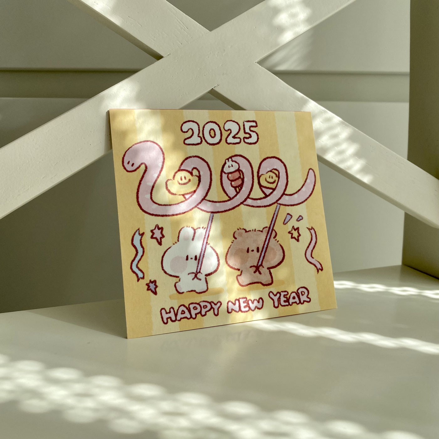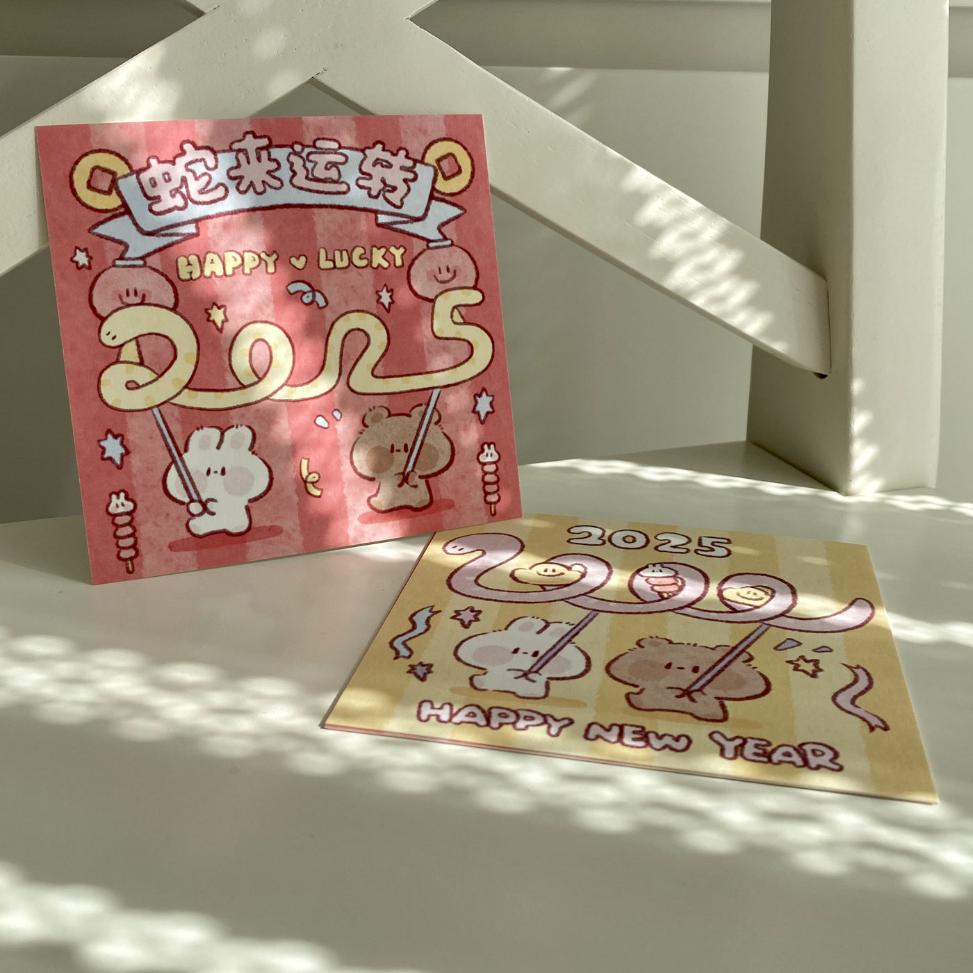 蛇来运转2025新年快乐贺卡/明信片/装饰卡片