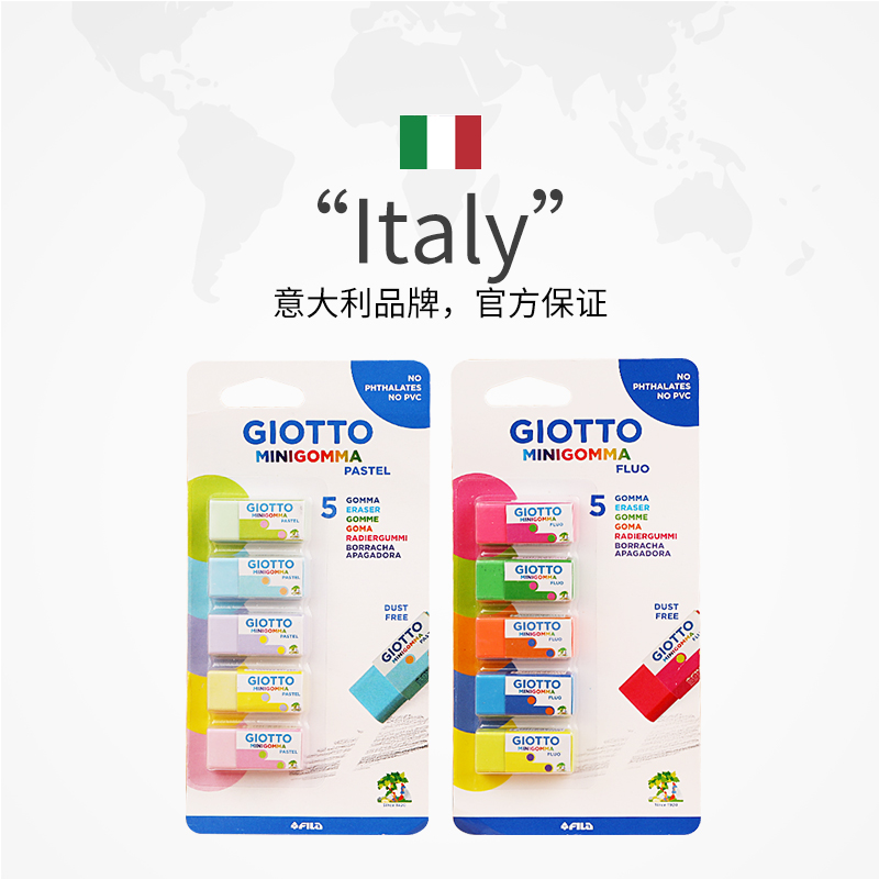 【自营】GIOTTO齐多进口马卡龙色橡皮擦小学生专用擦拭铅笔无尘橡皮擦拭成条安全环保小学生用彩色橡皮擦