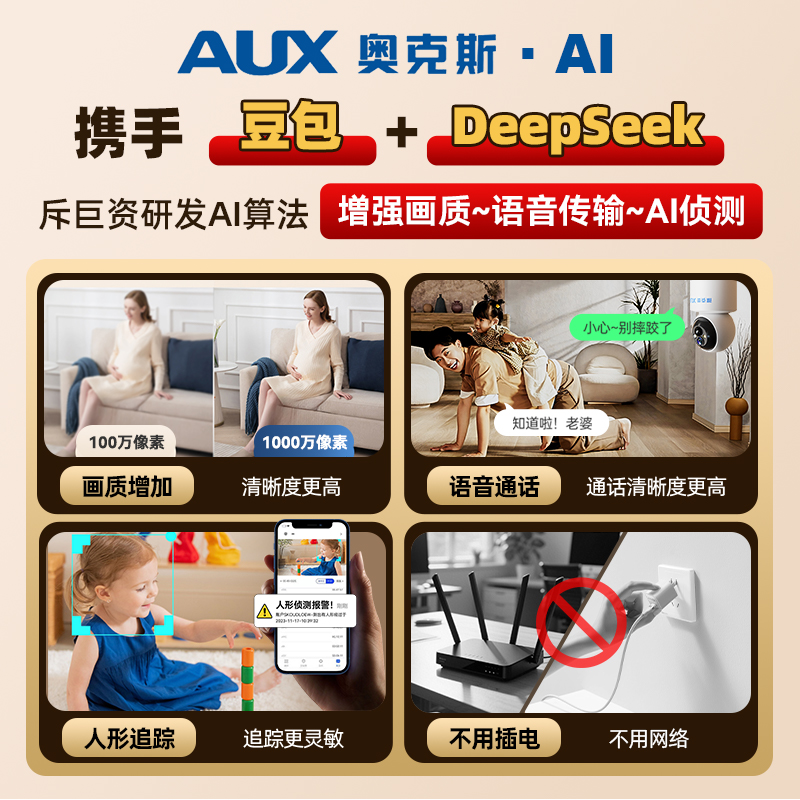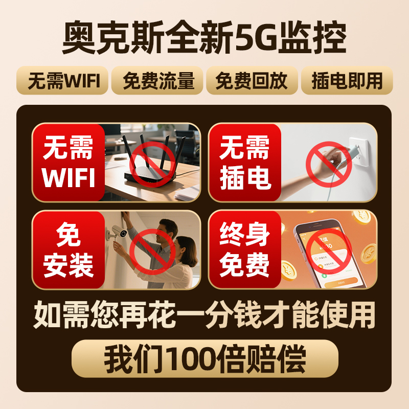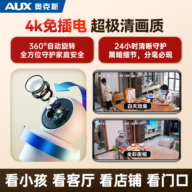 奥克斯免插电无需网络监控2025新款4G摄像头手机远程360度无死角