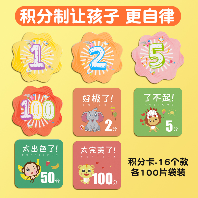 儿童积分卡奖励卡家庭幸运1分10分5分小学生奖励表卡片纸定制积分币兑换币创意培训班上课鼓励的孩子学习批发