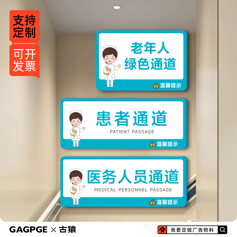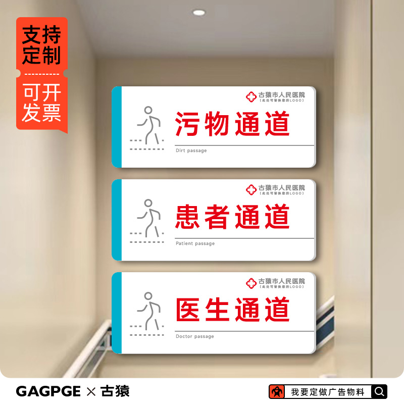 亚克力医院患者通道医护人员通道提示贴污物通道提示牌诊所标识牌