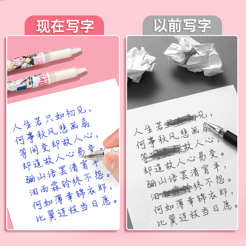 爱好柯南消字笔可换墨囊王者荣耀复写笔小学生用无痕消字魔笔双头魔擦笔蓝色消色笔一头可擦一头复写可擦钢笔