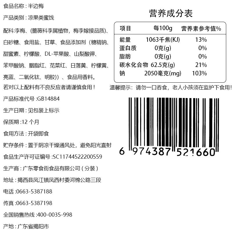半边梅梅类凉果独立包装混合酸甜解腻情人老婆梅子蜜饯果脯【