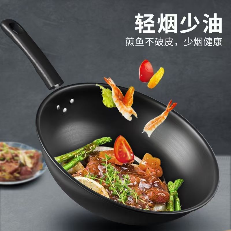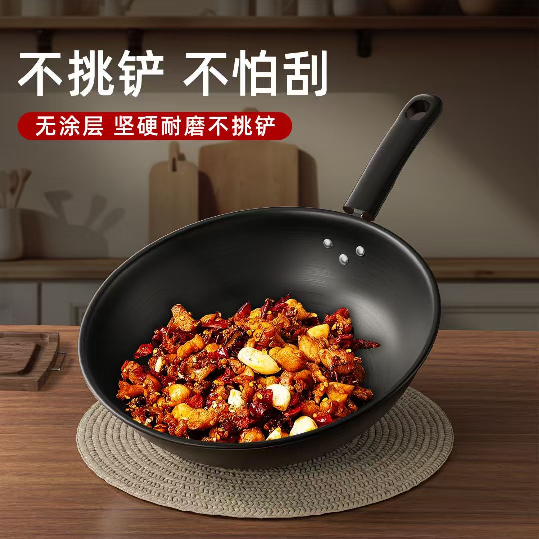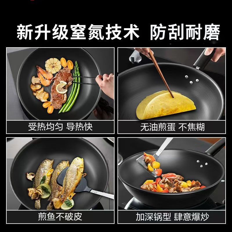 炒锅无涂层不粘锅窒氮不易锈精铁炒菜锅家用电磁炉燃气灶通用