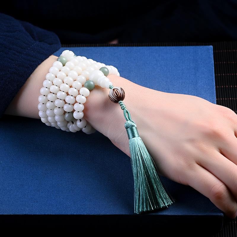 天然白玉菩提根手串女士长款手链多圈珠子项链民族风复古饰品个性