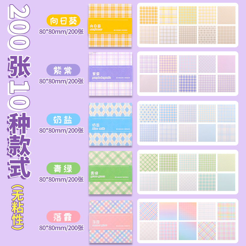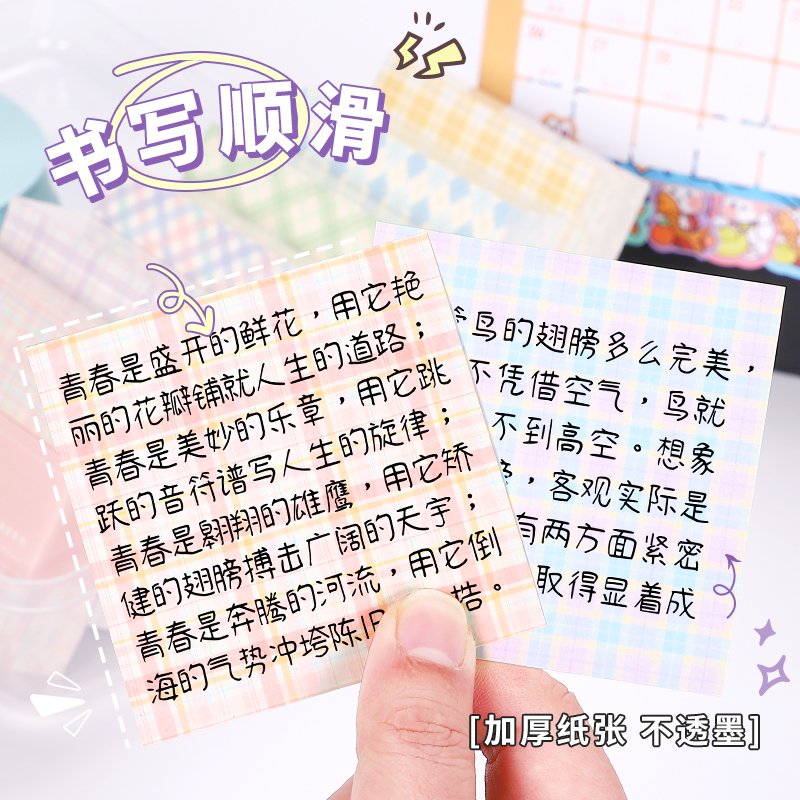 格子便签纸可爱ins风高颜值无粘性手帐专用素材便利贴便签贴纸本手账贴纸学生用分装便贴纸打底纸可撕方格纸