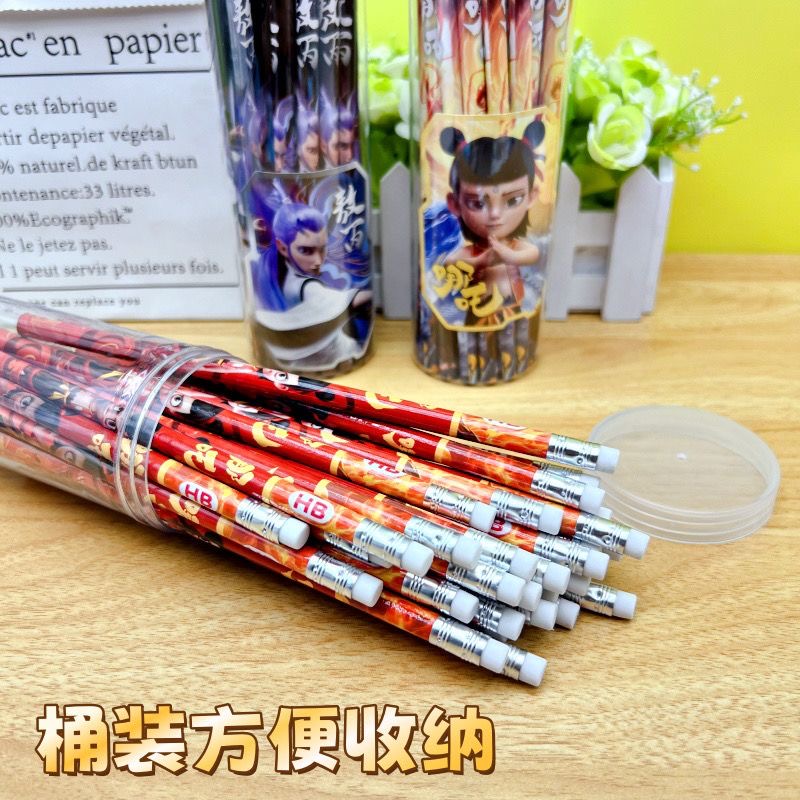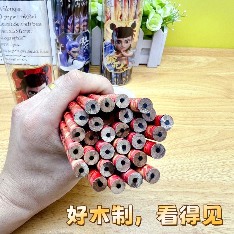小学生原木铅笔哪咤之魔闹海HB儿童铅笔练字30支装无铅毒熬丙铅笔