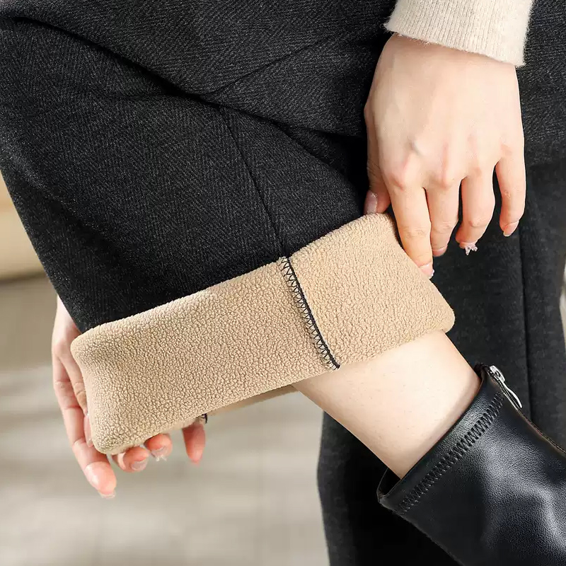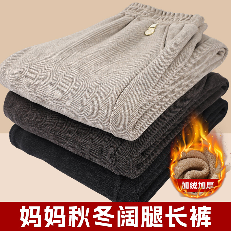 妈妈秋冬款毛呢裤子加绒加厚休闲阔腿裤中老年人女裤奶奶直筒长裤