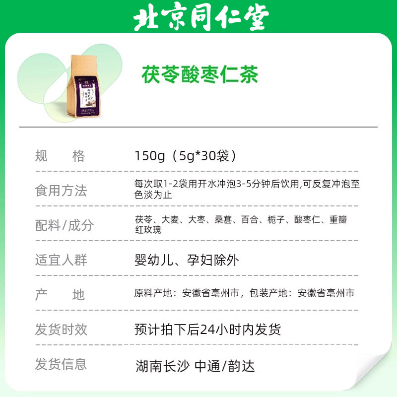 北京同仁堂酸枣仁百合茯苓茶非助眠膏多梦睡眠质量差正品旗舰店yy