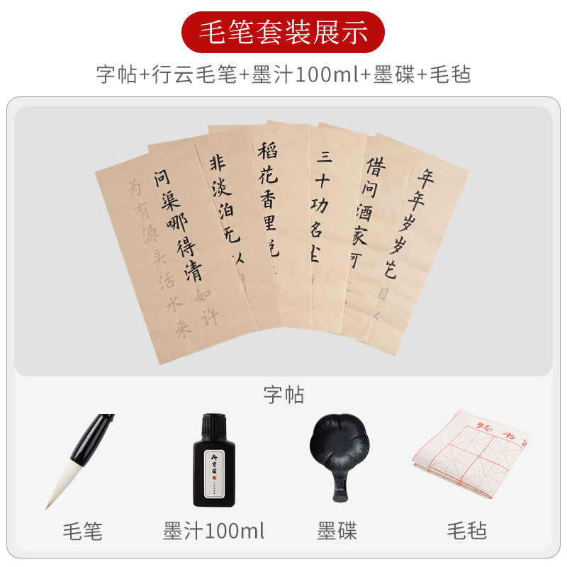 初学者中楷描红毛笔字帖练字专用成年书法入门临摹套装软笔练字帖楷书作品纸仿古纸张软头笔练习纸临慕宣纸