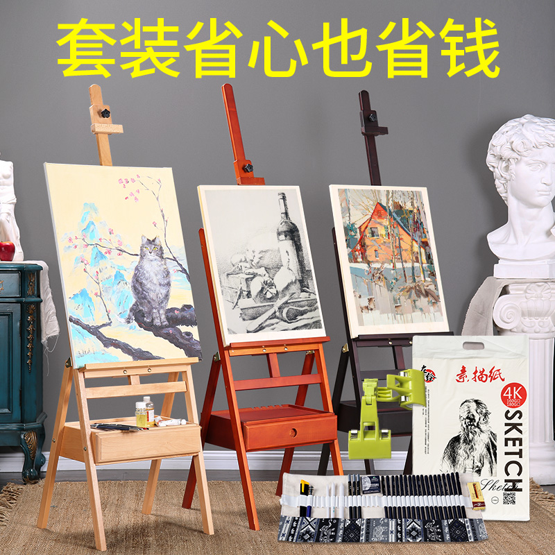 热卖1W+画架画板美术生抽屉支架式展示架榉木折叠便携儿童成