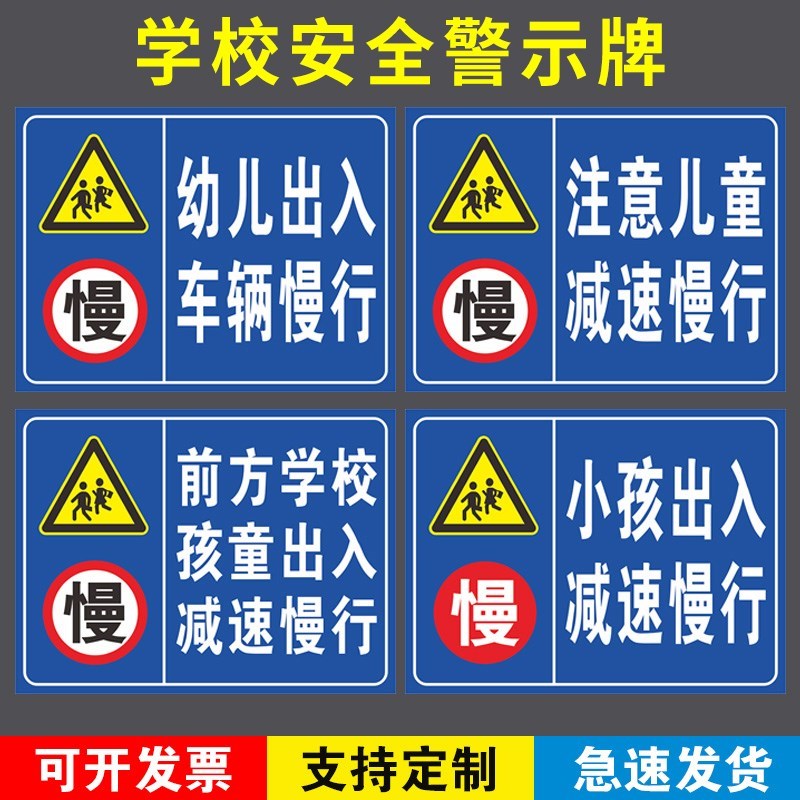 学校校区路段减速慢行警示提醒安全标识牌幼儿小孩出入车辆慢行注