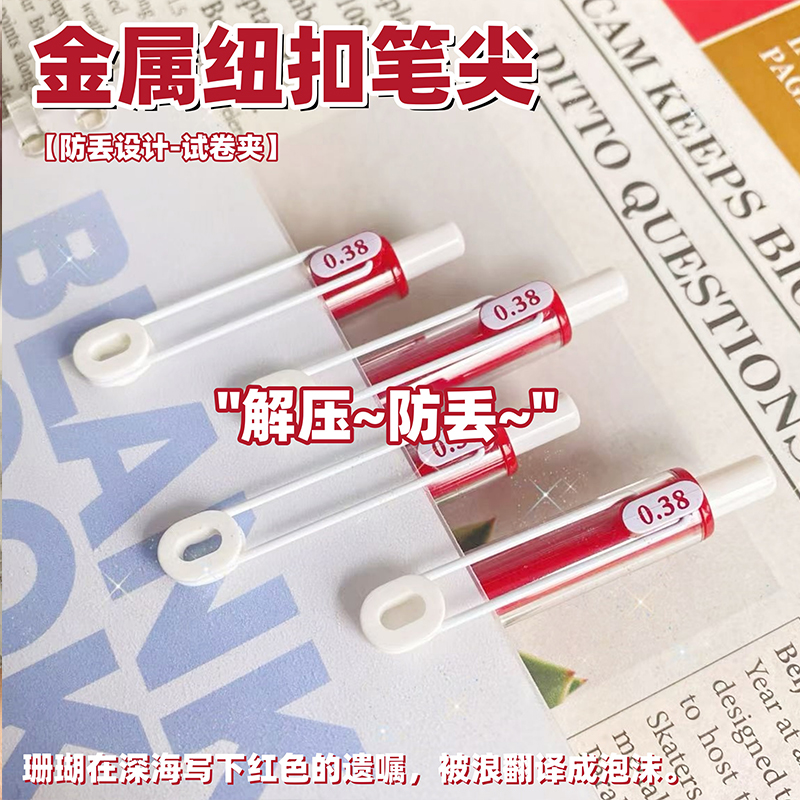 0.38MM极细红笔按动中性笔高颜值速干学生刷题考试笔纠错红色笔芯