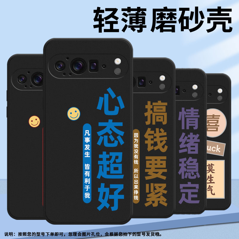 适用谷歌pixel9proxl手机壳磨砂运气保护套搞钱要紧卡通商务早日退休皆有利于我别慌笑脸格局打开国潮全包边