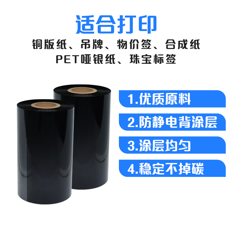 蜡基混合基碳带卷110×300m 40 50 60 70 80 90 100条码打印机不干胶铜版标签纸亚银纸全树脂碳带色带碳带纸