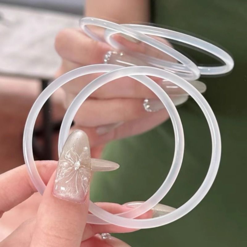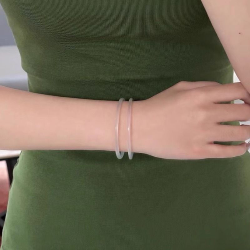 叮当镯一对冰种天然荔枝冻玉髓玛瑙细圆条高冰白月光玉镯翡翠两条