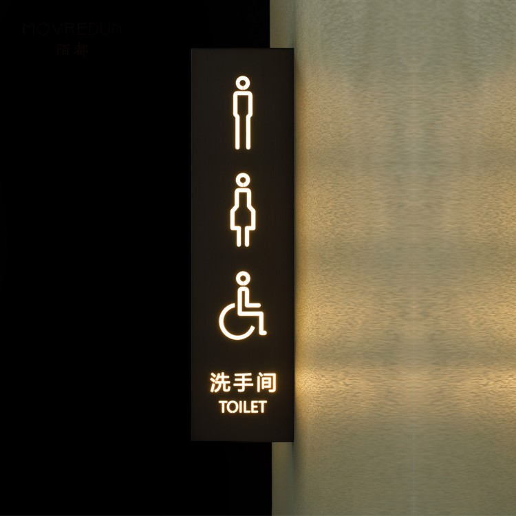 定制不锈钢双面灯箱公共洗手间发光侧挂侧招标识挂牌厕所门牌商店美甲店咖啡馆墙面指引导视牌logo指示指引牌