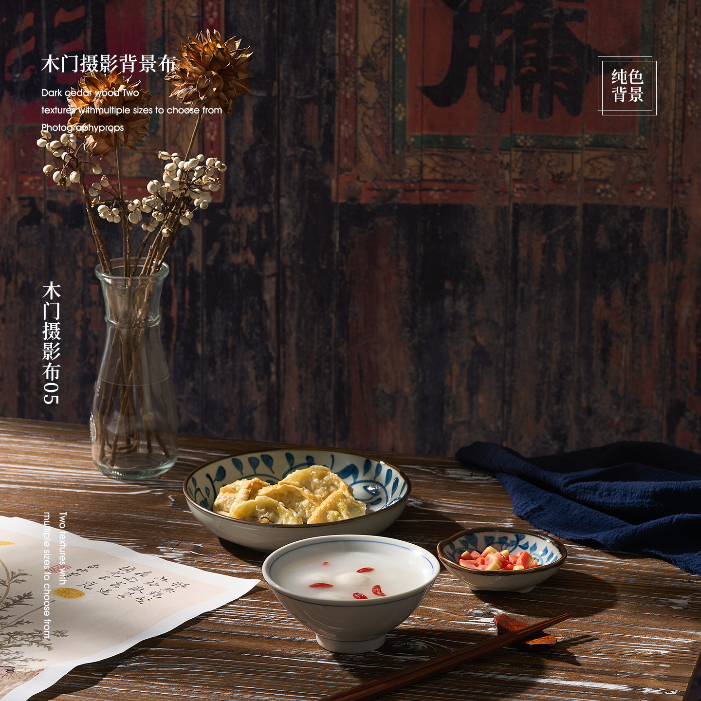 复古木门拍照背景布 中式美食面食摄影拍摄道具大尺寸氛围感背景