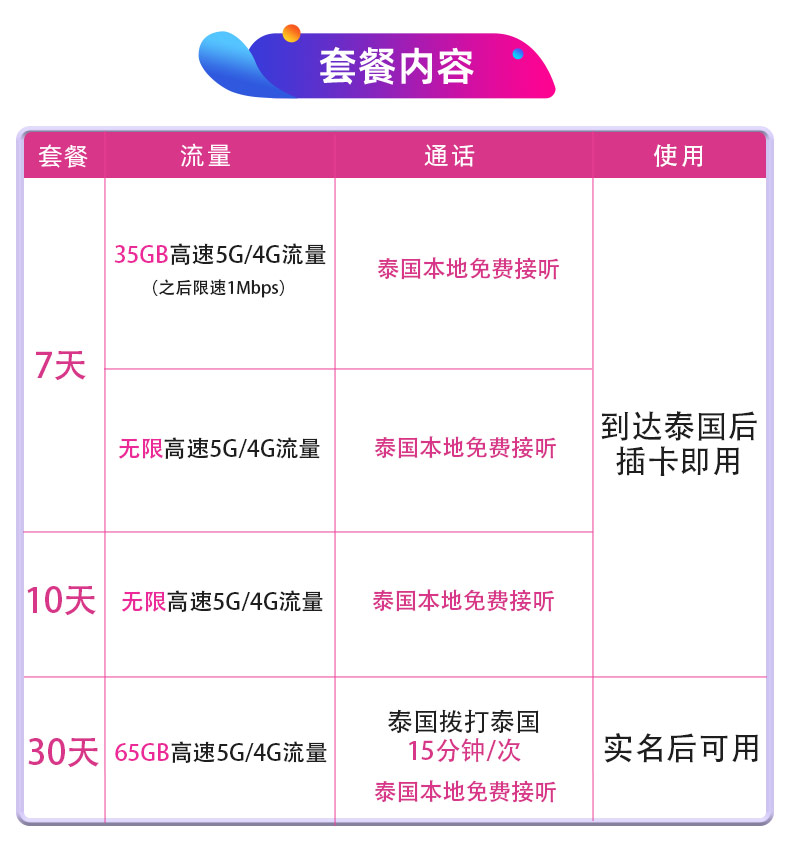泰国电话卡True卡可选7/10天无限5G/4G流量旅游手机上网SIM卡