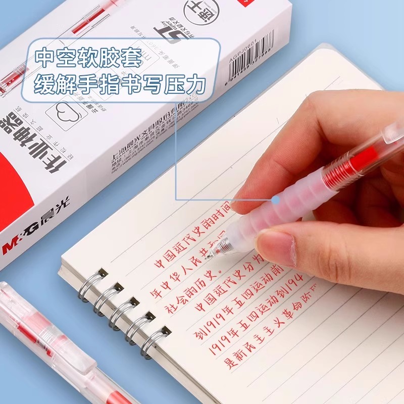晨光红笔学生专用高颜值红色按动中性笔备考重点标记st头教师红水笔批改作业评分笔速干0.5红笔替芯大容量