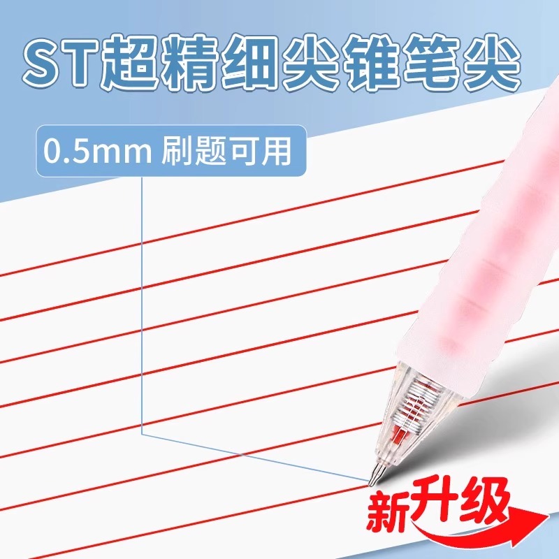 ST刷题笔高颜值按动中性笔圆珠笔黑色水笔小学生专用考试0.5速干碳素笔水性黑笔按压式做笔记签字笔非按斤卖
