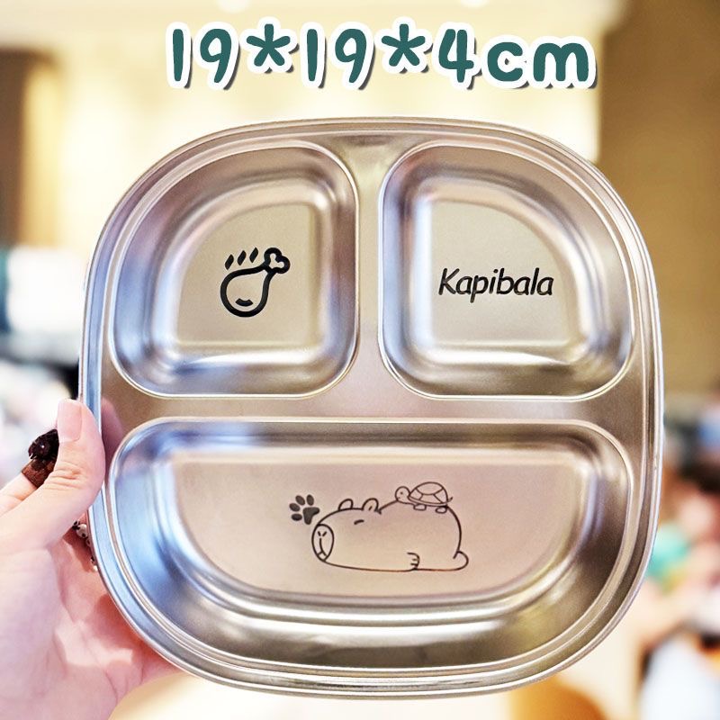 食品级不锈钢儿童餐盘宝宝吃饭卡通盘家用饭盘学生便携分格便当盒