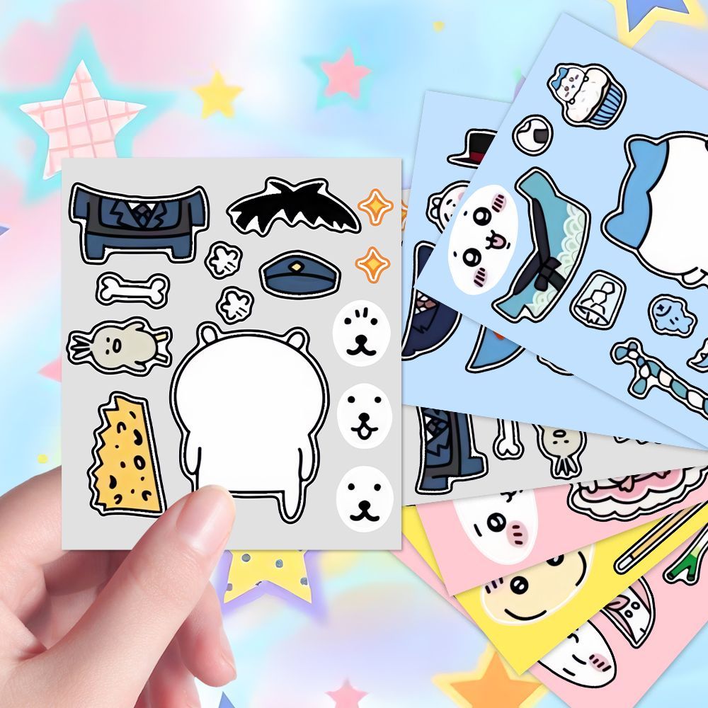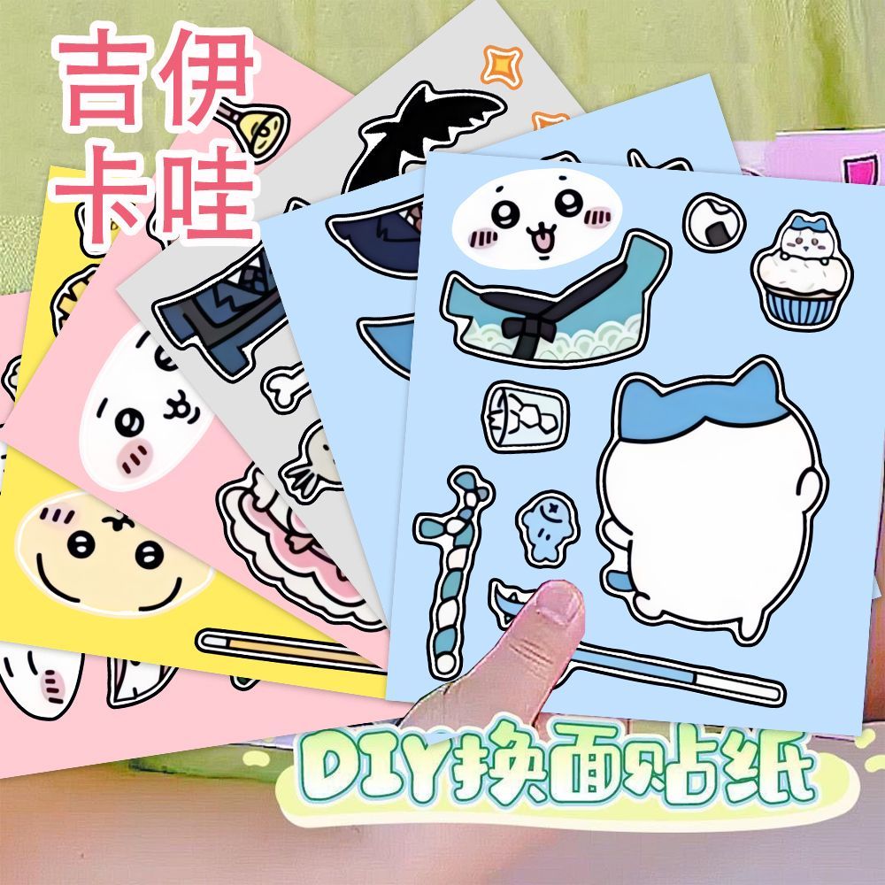 6张吉伊卡哇换装贴纸趣味装饰DIY手账益智儿童拼贴玩具防水装饰贴